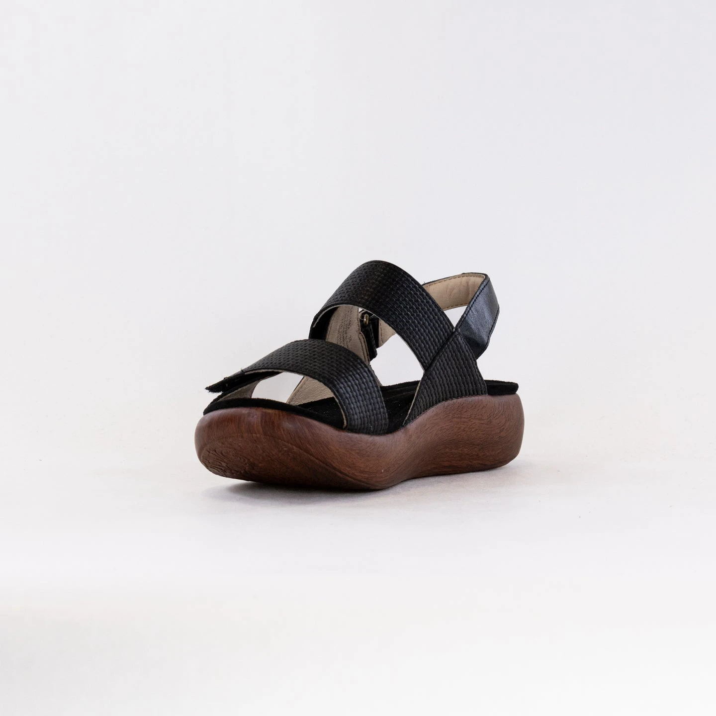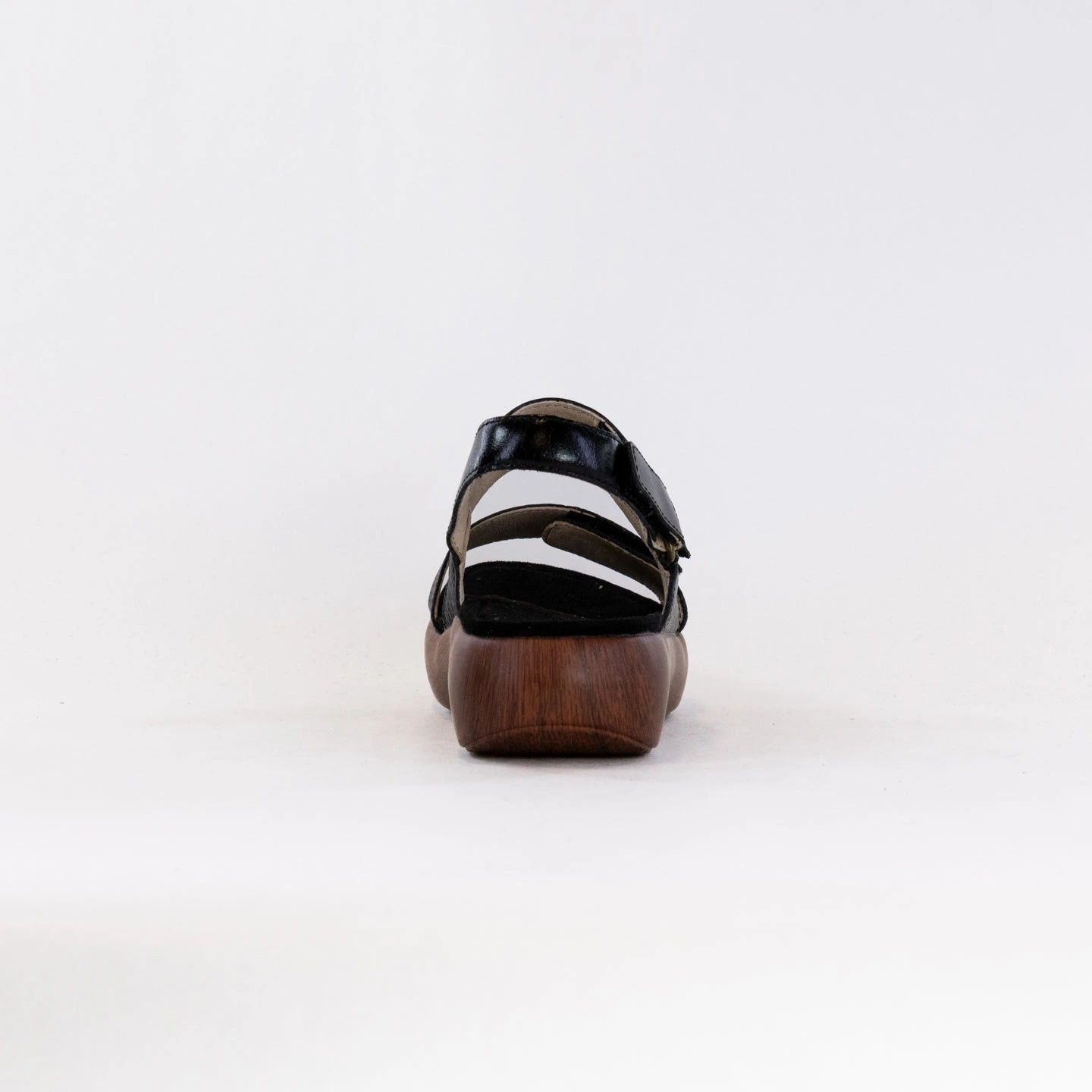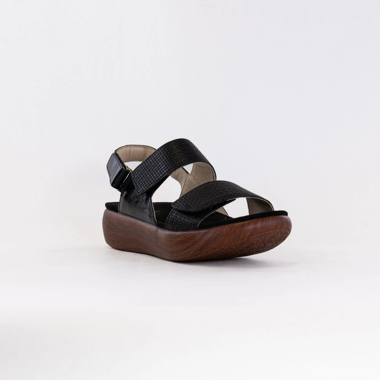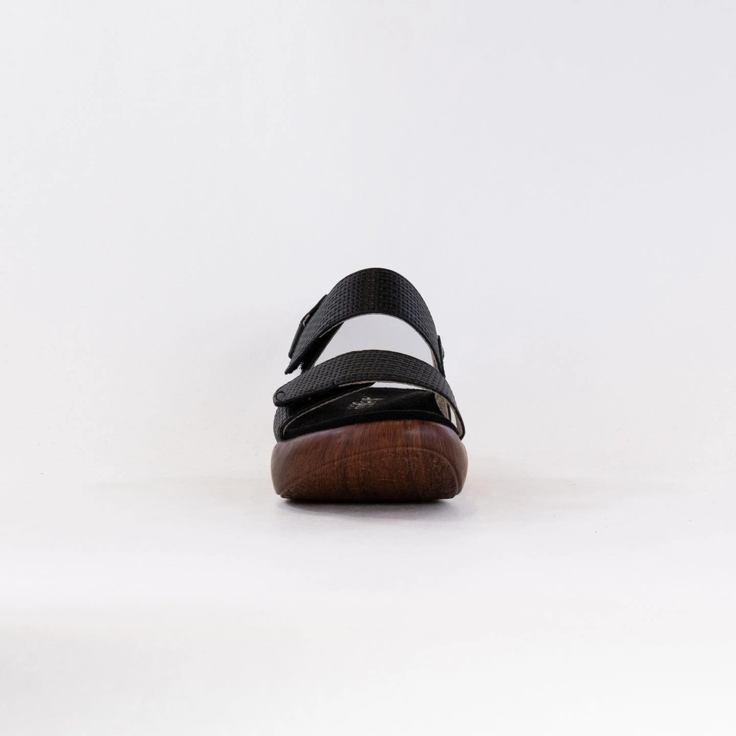 Triple hook-and-loop straps across the vamp and heel of this leather sandal offer the ultimate in adjustability and security. The comfort experience continues with arch support built into the cushioned insole, midsole and slip-resistant sleek rocker outsole.