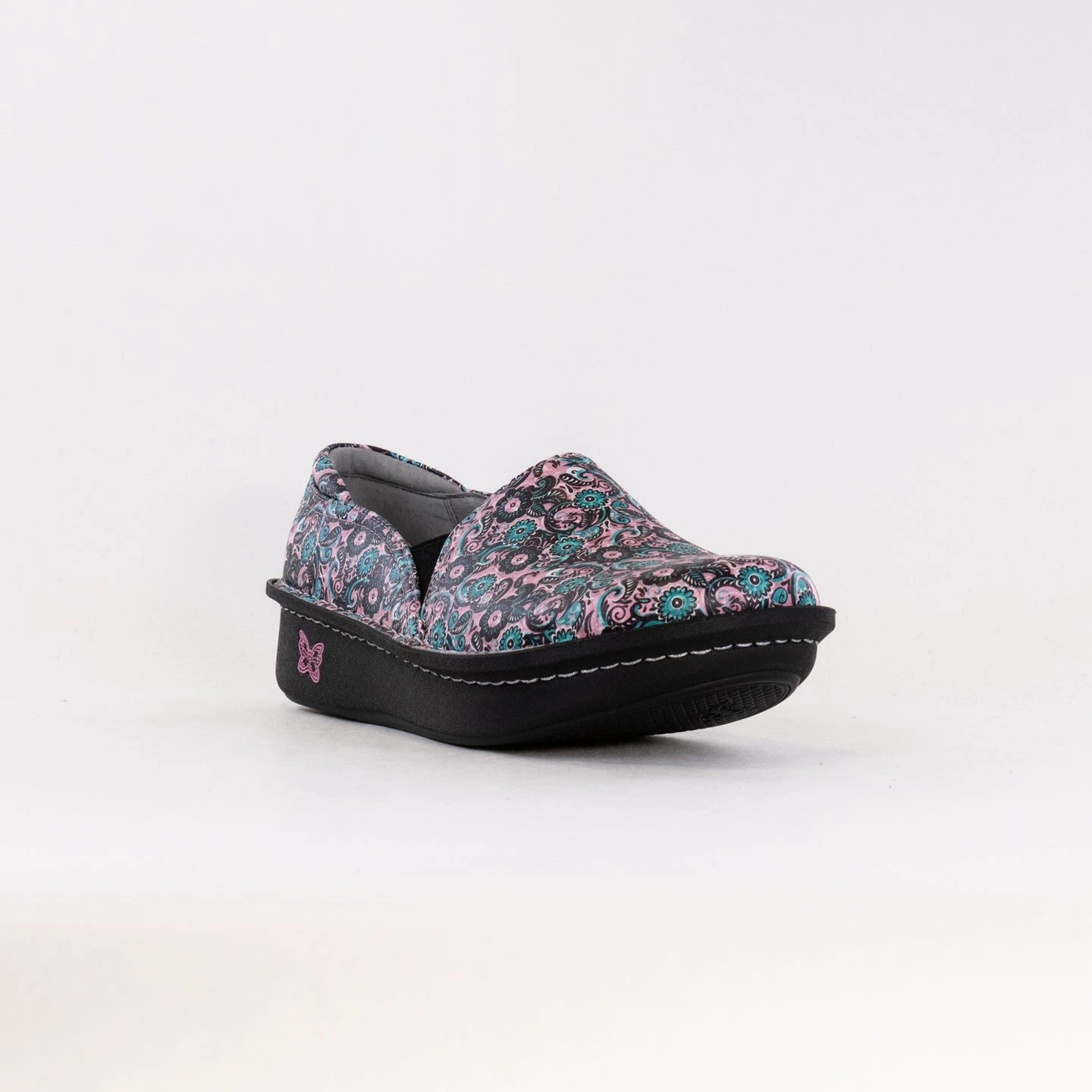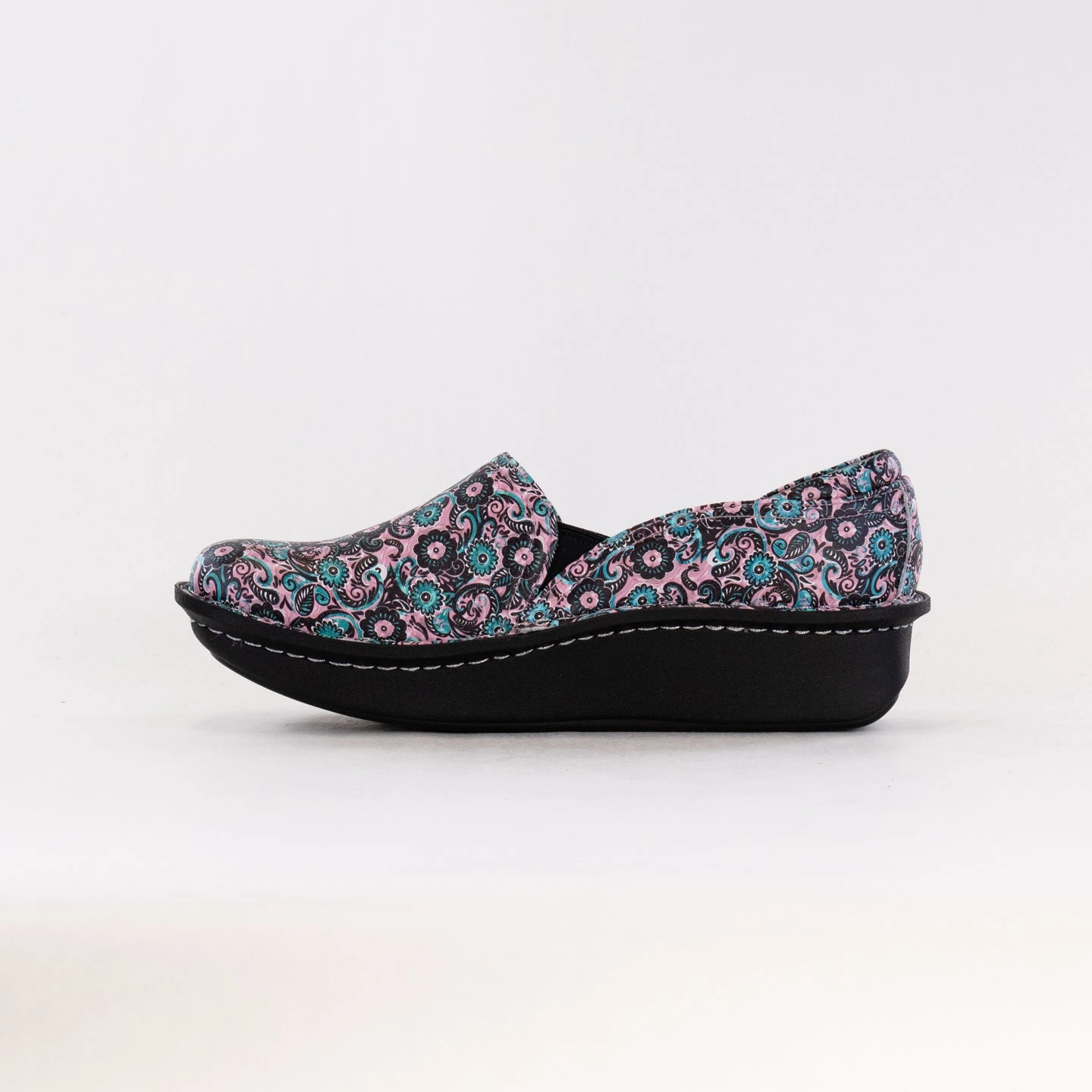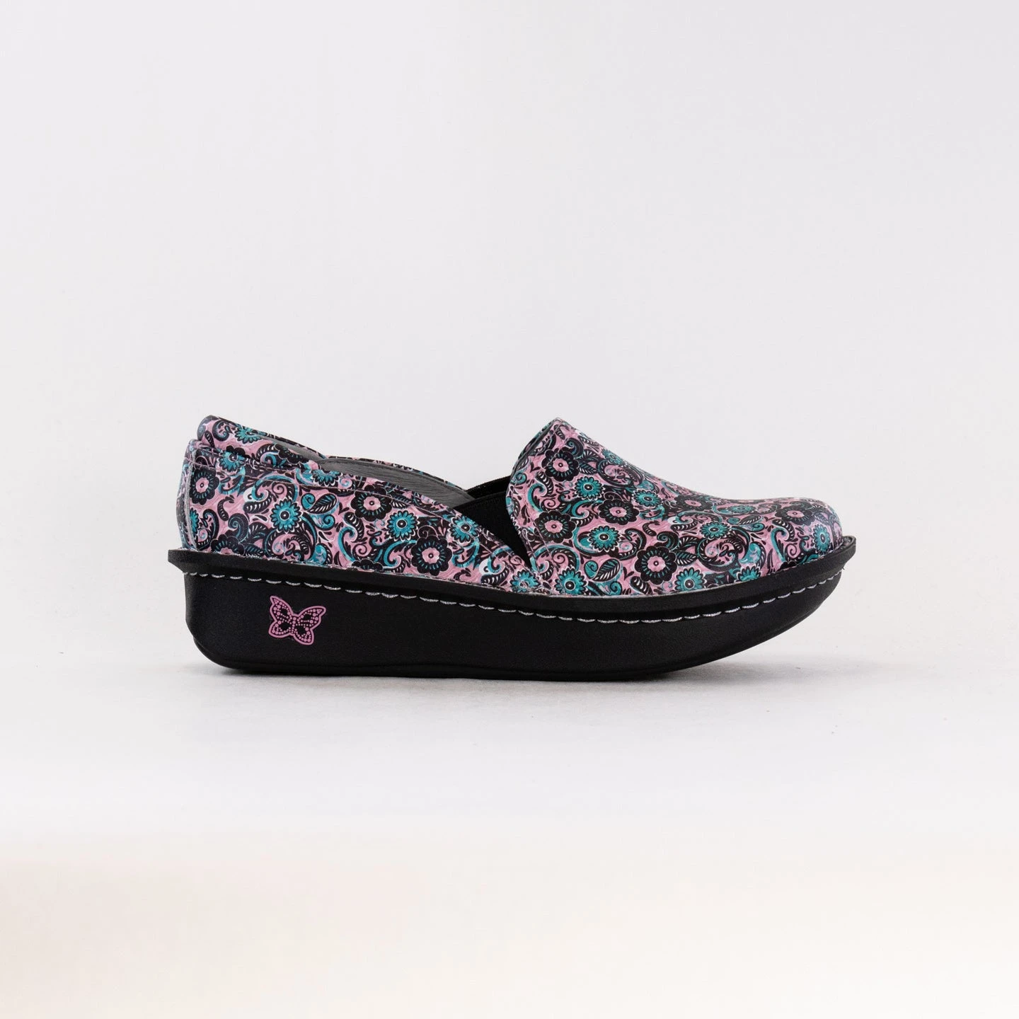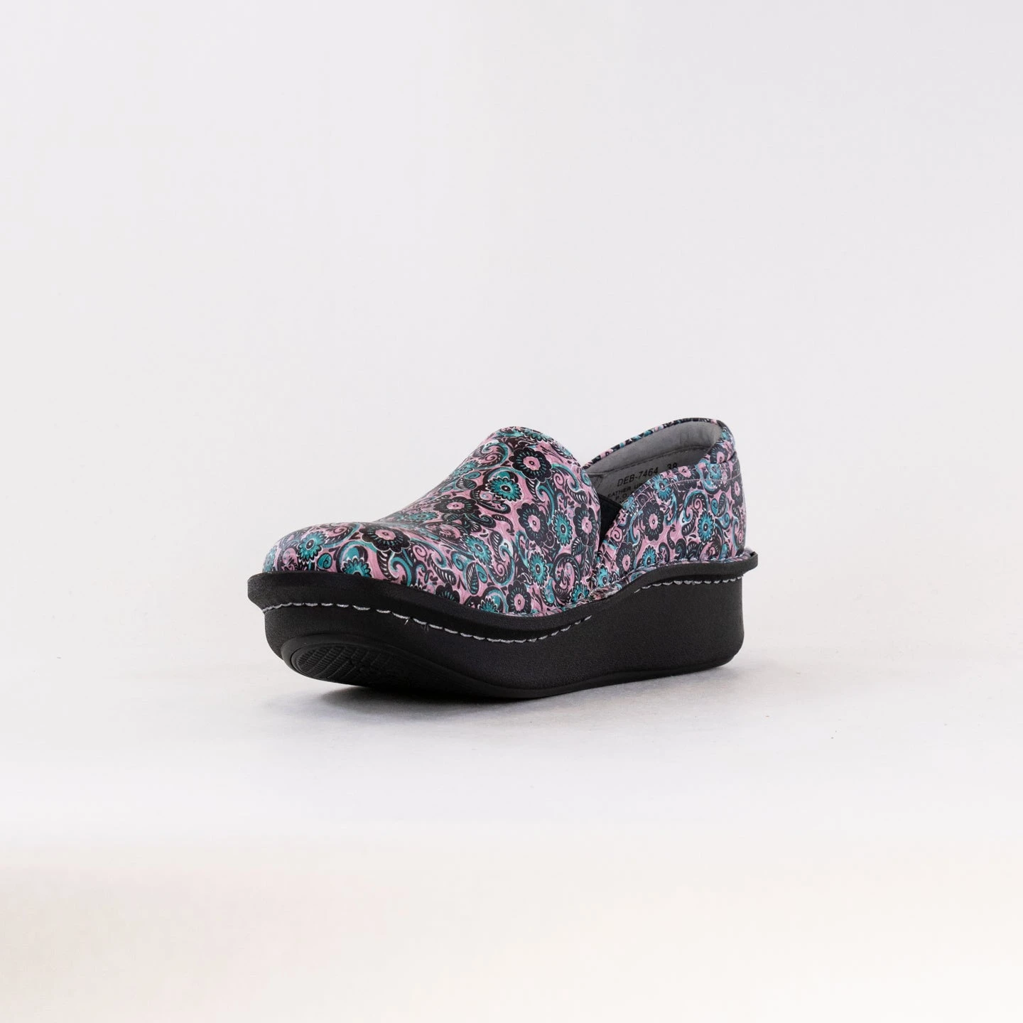Featured in a Black Embossed Rose design on a patent leather upper.