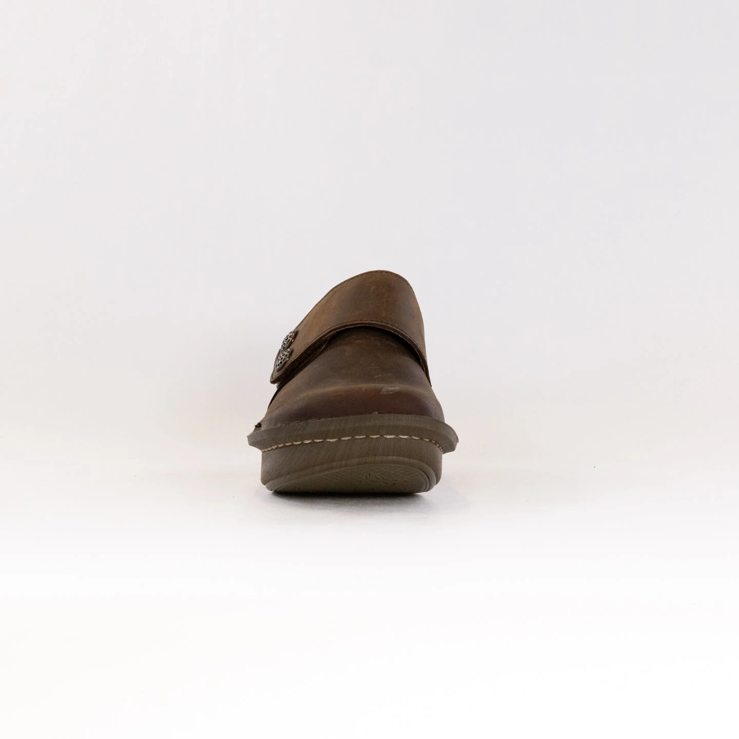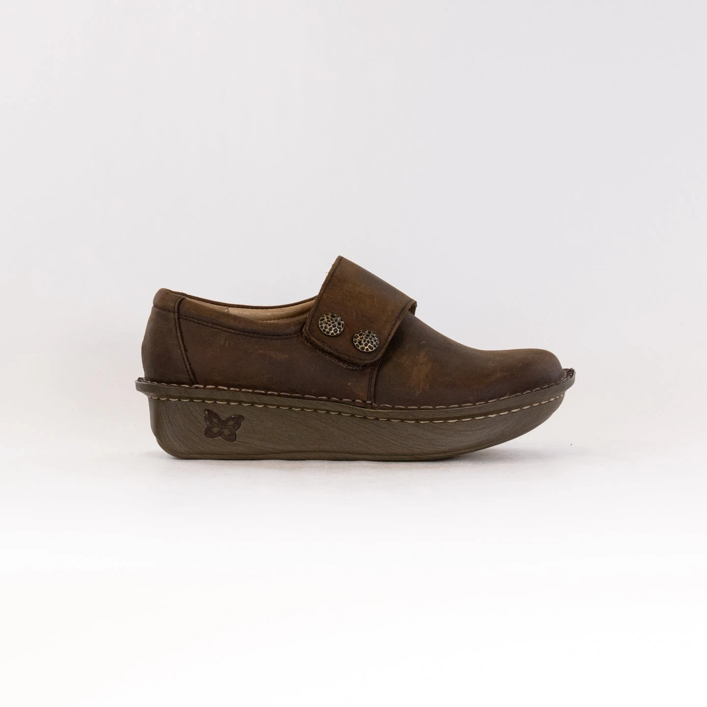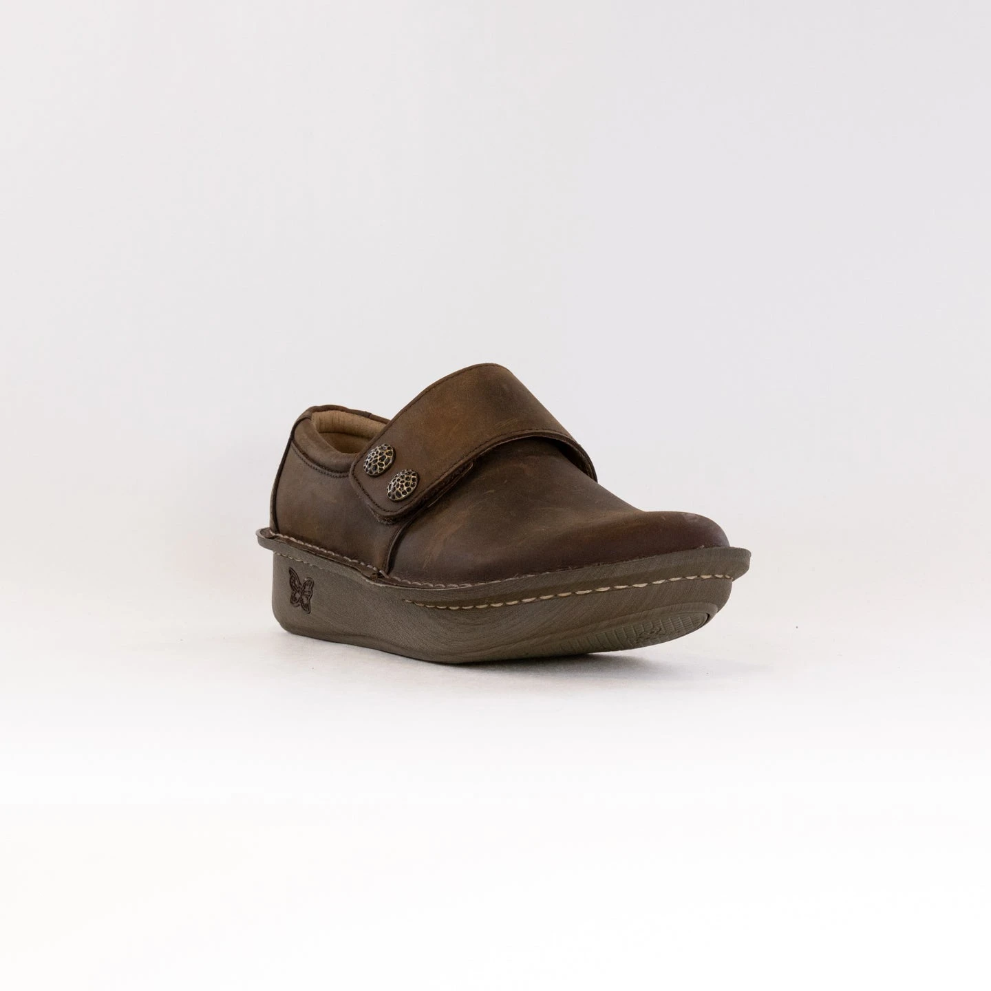 Stay sure footed in this adjustable hook-and-loop strap leather casual shoe dressed up with decorative artisanal hardware. A gently padded collar and ergonomically designed removable footbed made of memory foam and cork enhances its wearability. Underneath it all is a slip-resistant classic rocker outsole for nine-to-five comfort.