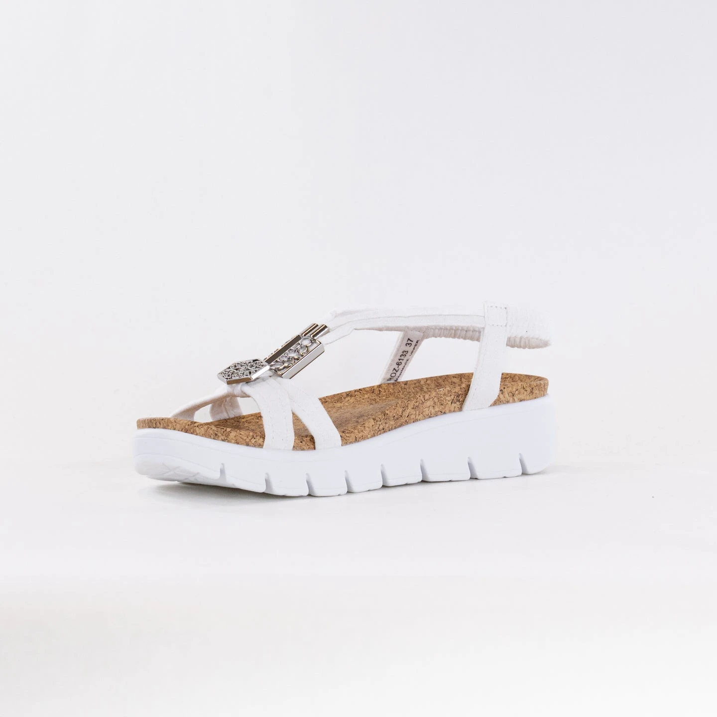 - Braided vegan and textile upper with decorative hardware.