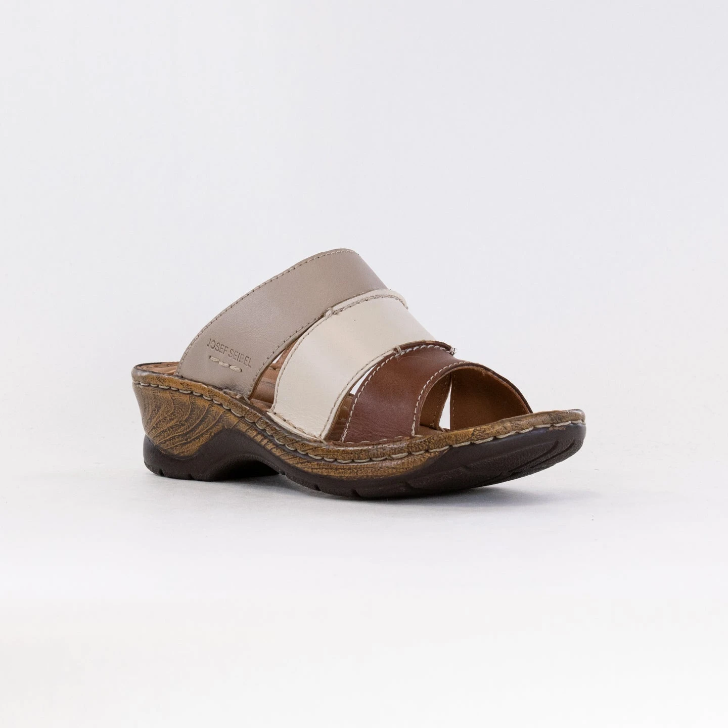 Slide into comfort with this versatile wedge sandal. The three colored panels make it easy to match with any wardrobe.