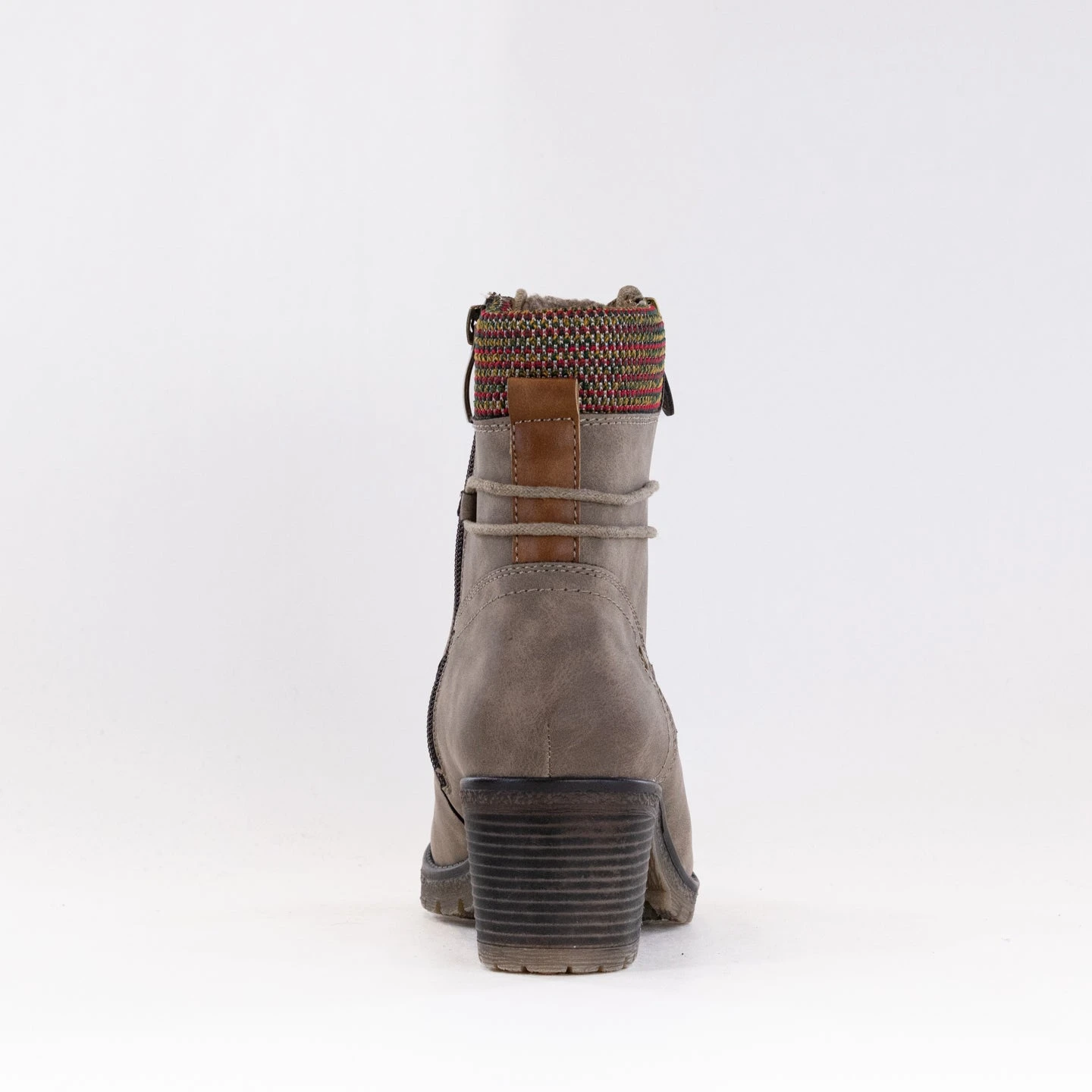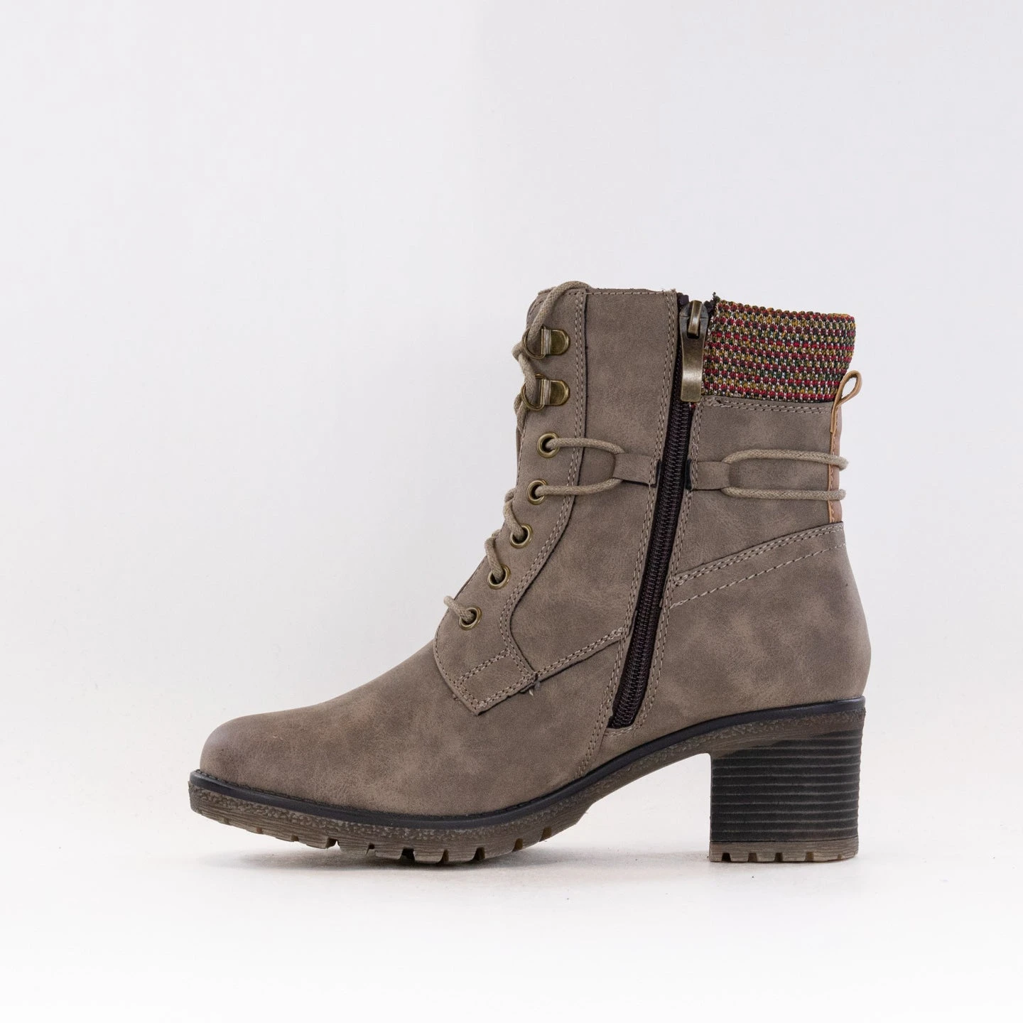 Stylish, water resistant, casual mid boot featuring a soft padded woven cuff, functional lace-up design for maximum adjustability and a decorative outside zipper. Â