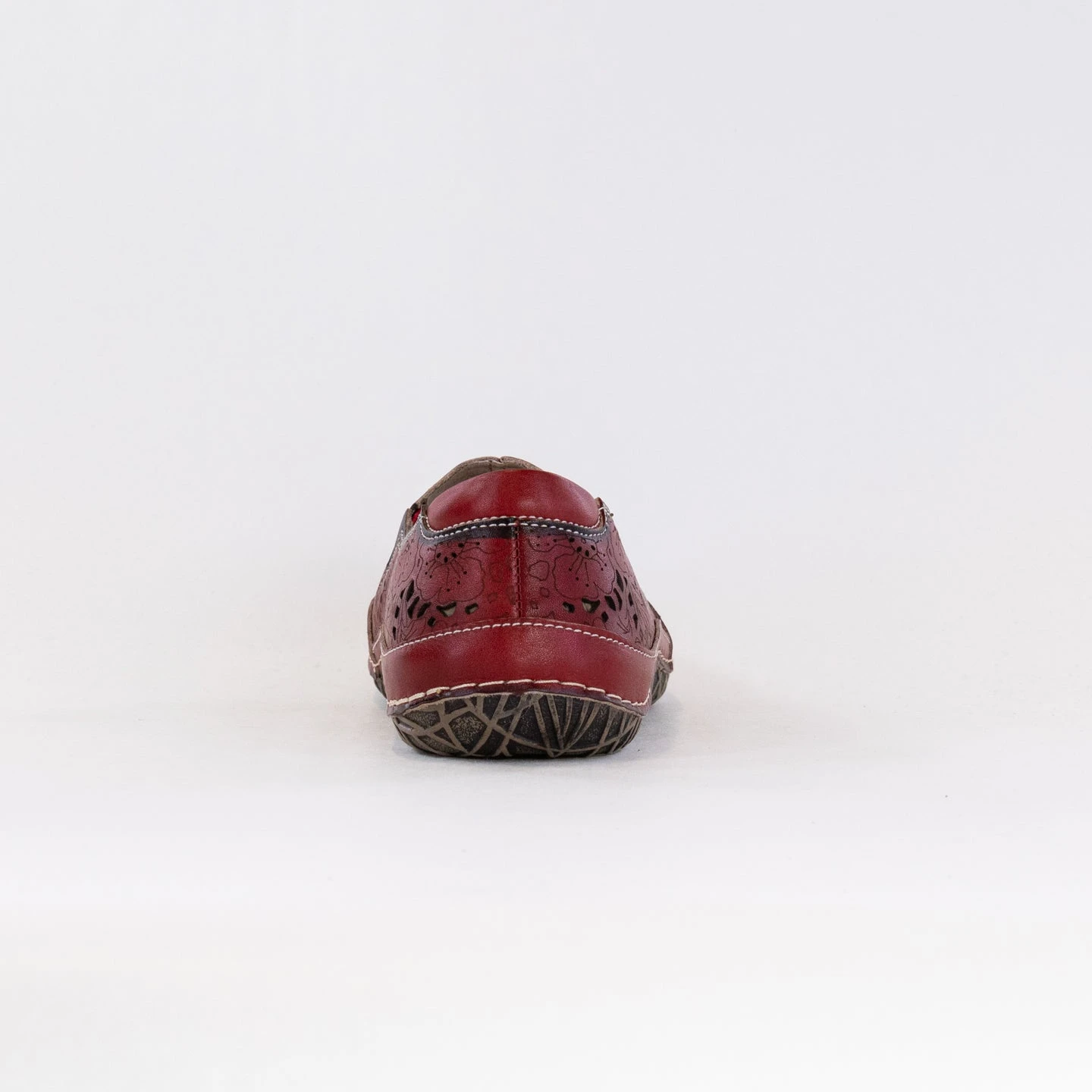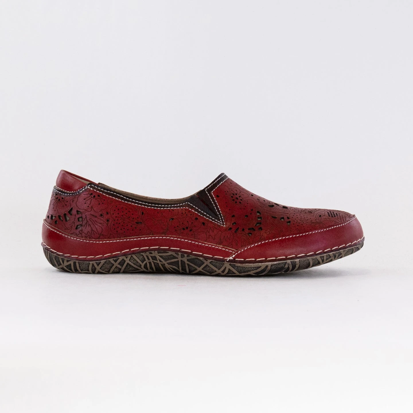 French inspired, hand painted leather loafer featuring flower perforated design and covered elastic goring.