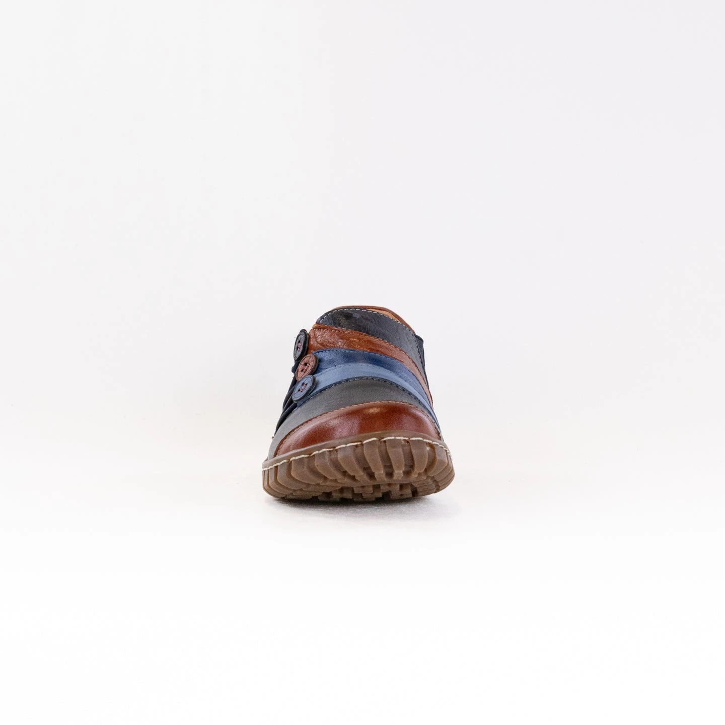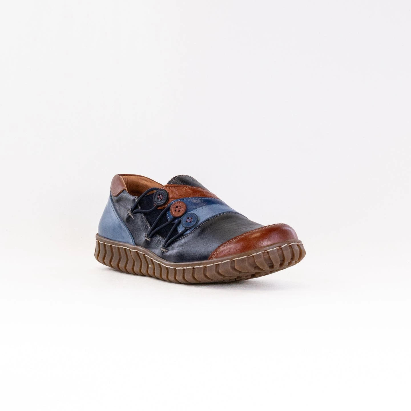 Premium, high-quality leather shoe featuring striking color blocking and unique colorful buttons on a flexible comfort sole.