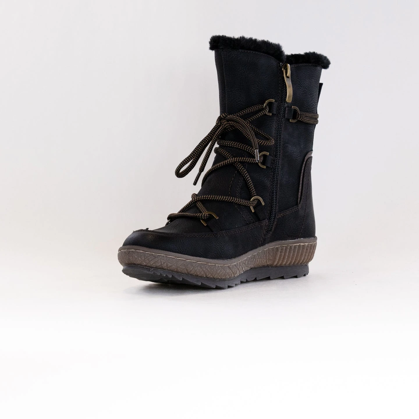 A cold weather, water resistant, Apres-ski bootie with plush faux fur trim and laced front detail featuring our Relife shock-absorbing sole. Bring fashion to your attire without sacrificing comfort!