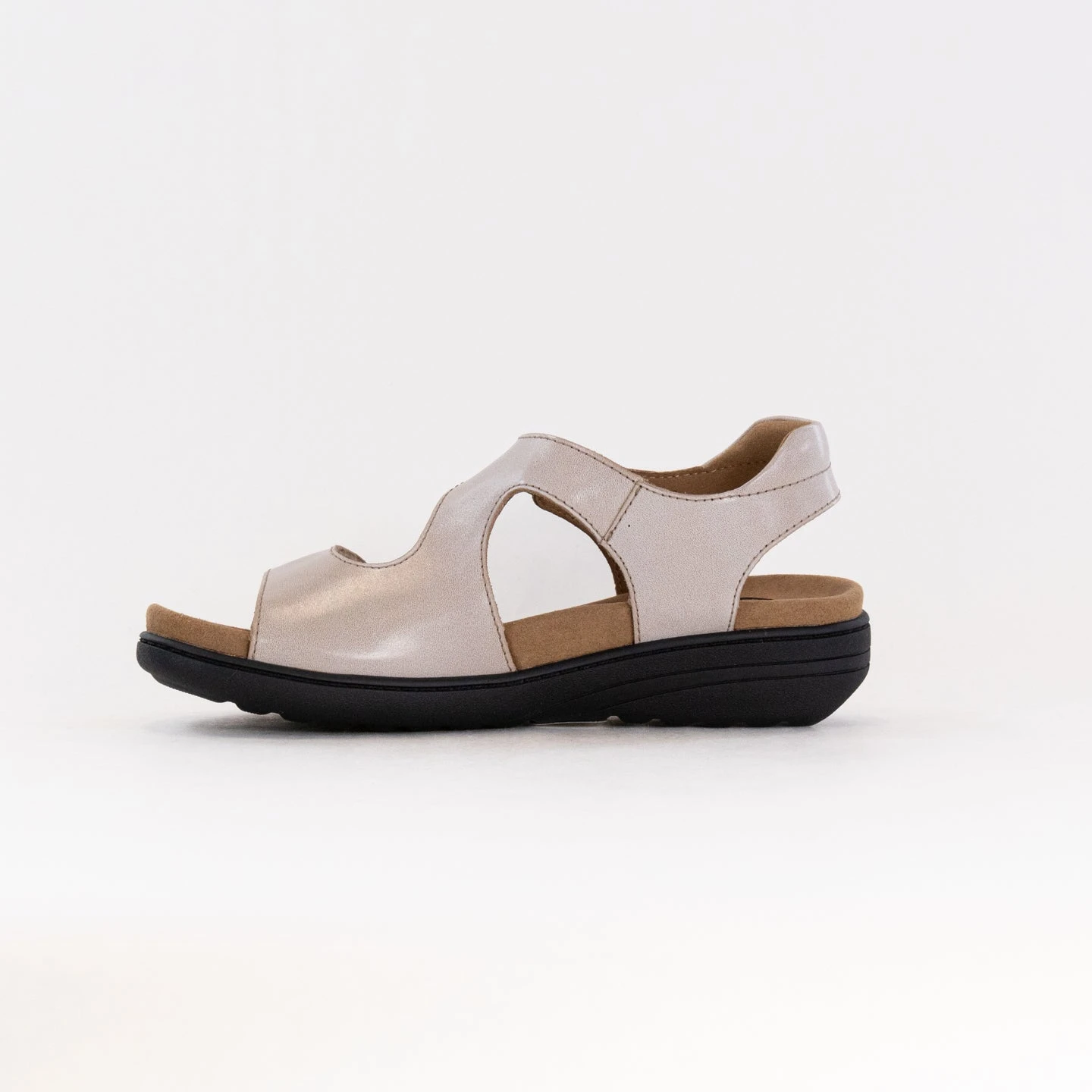 Beautiful leather uppers and completely adjustable design giving you a secure fit. Featuring our Structured Support footbed covered in microsuede with exceptional arch & metatarsal support on the perfect low wedge design.